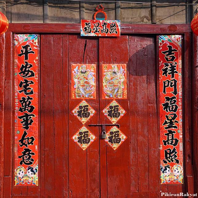 Orang-orang Tionghoa gemar menghias tembok dengan menggantungkan dekorasi yang berisi kata-kata tertentu. Kata yang paling umum digunakan adalah fu (keberuntungan), kegembiraan dan nasib baik.